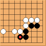 is the best move, leaving 'a' and 'b' as miai points, resulting in Eye versus No Eye capturing race.